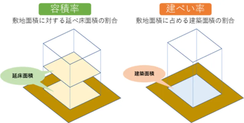 まず、敷地には「建ぺい率」と「容積率」がその敷地(エリア)ごとに定められています。