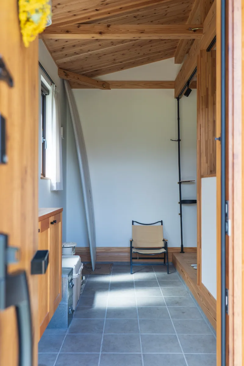 そんな使い方ができるのも、仕切らない玄関ならではの贅沢。土間を広めに取れば、週末はそこでコーヒーを飲みながらギアの手入れをする…なんて、最高の時間が過ごせます。