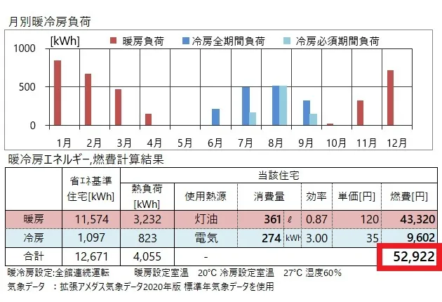 年間でいくら暖房費が掛かるのか、設計データを元に断熱性能を計算し、