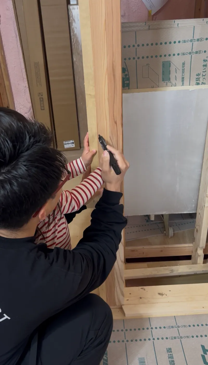 また、打合せの合間には、柱にご家族皆さまのお名前を書いていただきました。