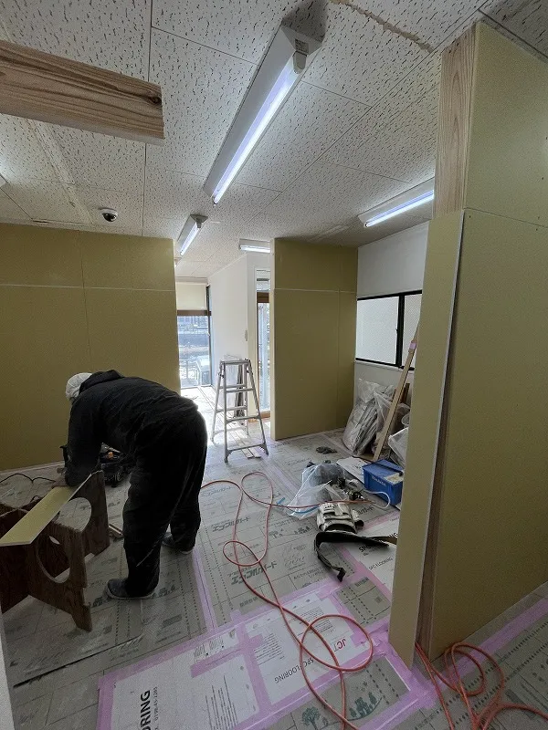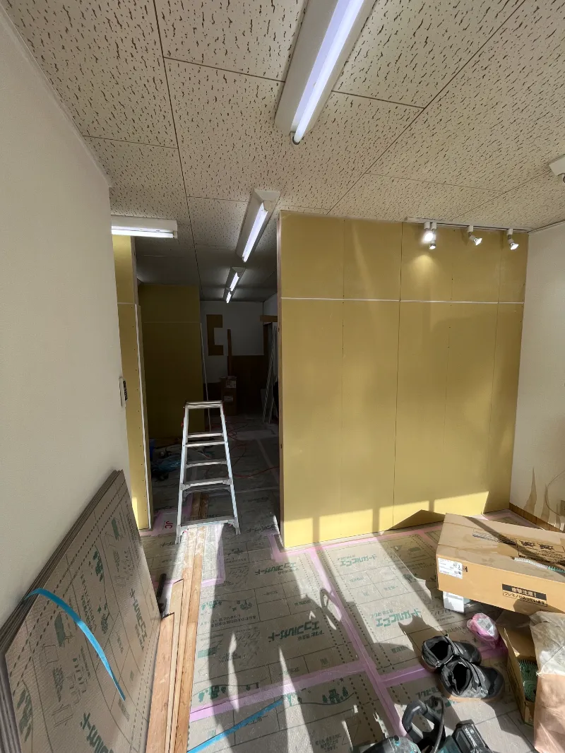 新設の壁が建てられ、ボードが貼られて行きます^^