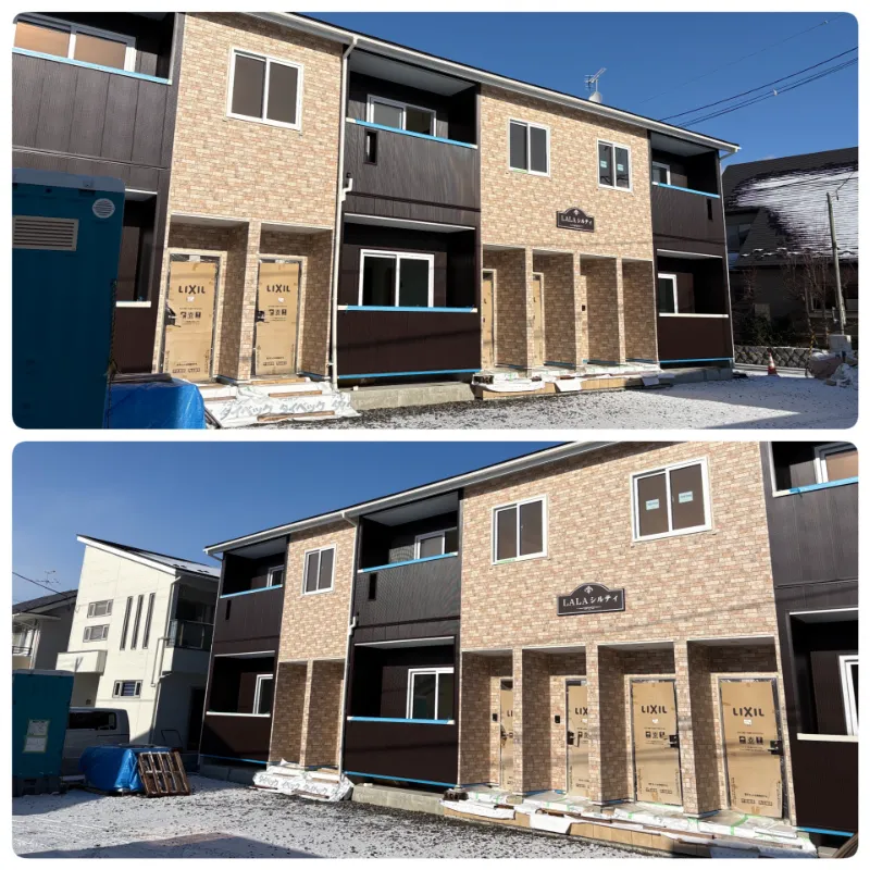内部の仕上げ工事も終わり、外構工事待ちです。事務所には宅配ボックスが山になってます笑