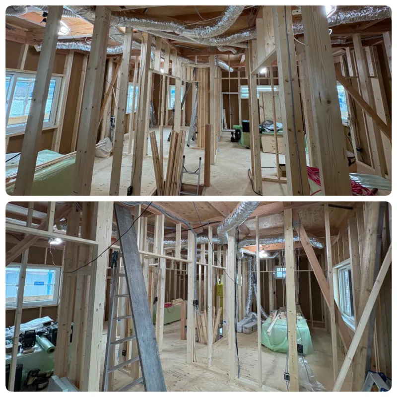 昨日は全館空調の配管と電気配線がされていました。1/9に上棟検査予定です。