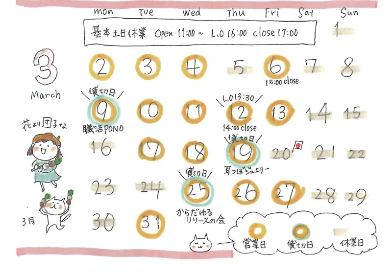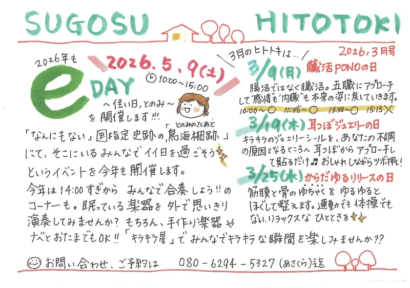 カフェSUGOSU-HITOTOKI 3月のお知らせ