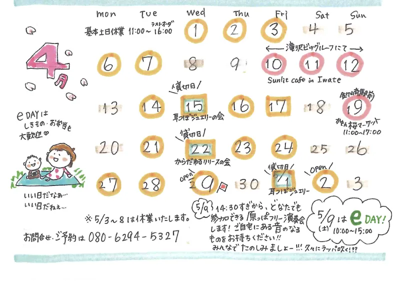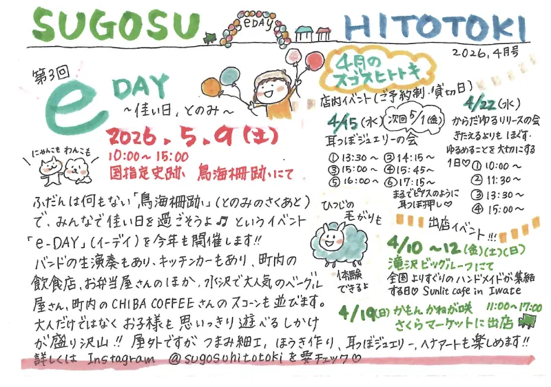 体験スペース カフェSUGOSU-HITOTOKI 4月のお知らせ