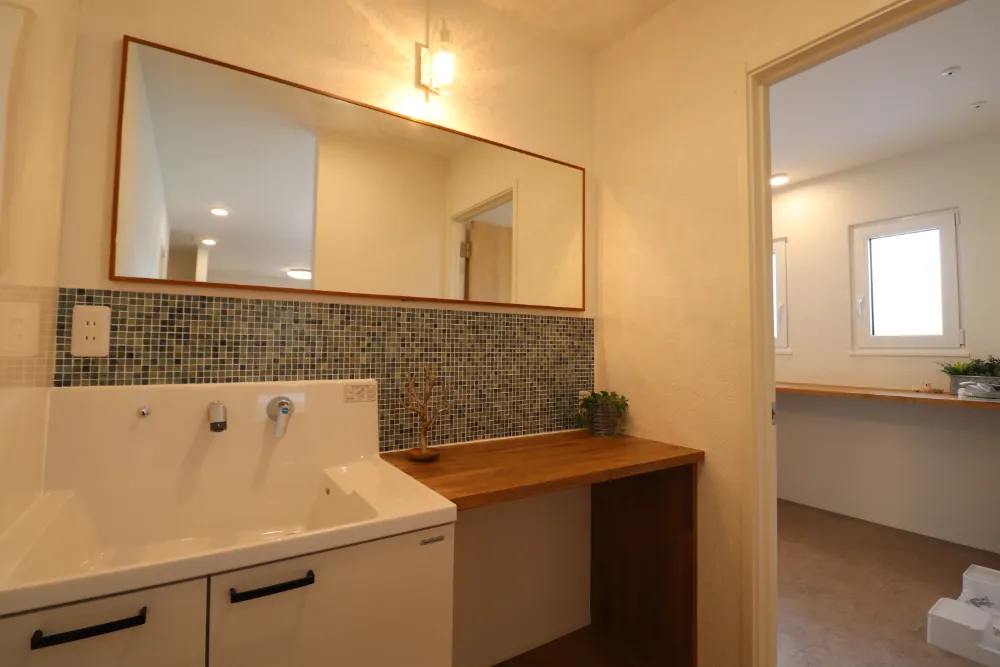 洗濯物を畳んだり、アイロンがけをすることが出来る便利な造作カウンターを配置。