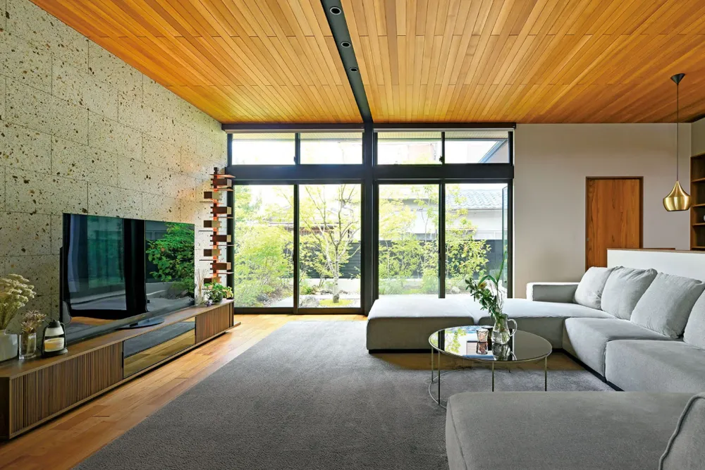 緑あふれる中庭とリビングを大開口で繋げることで、春は新緑、秋は紅葉を楽しめる住まいが完成しました。