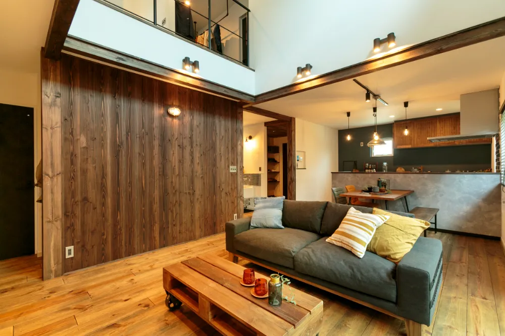 大きな吹き抜けのある開放的なリビング