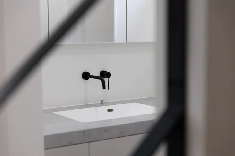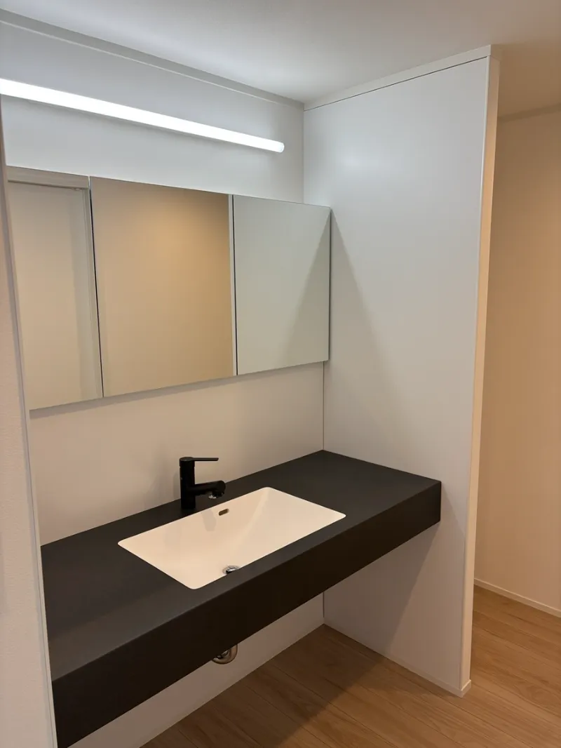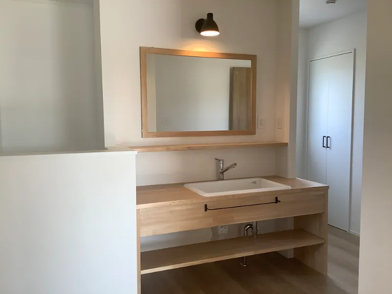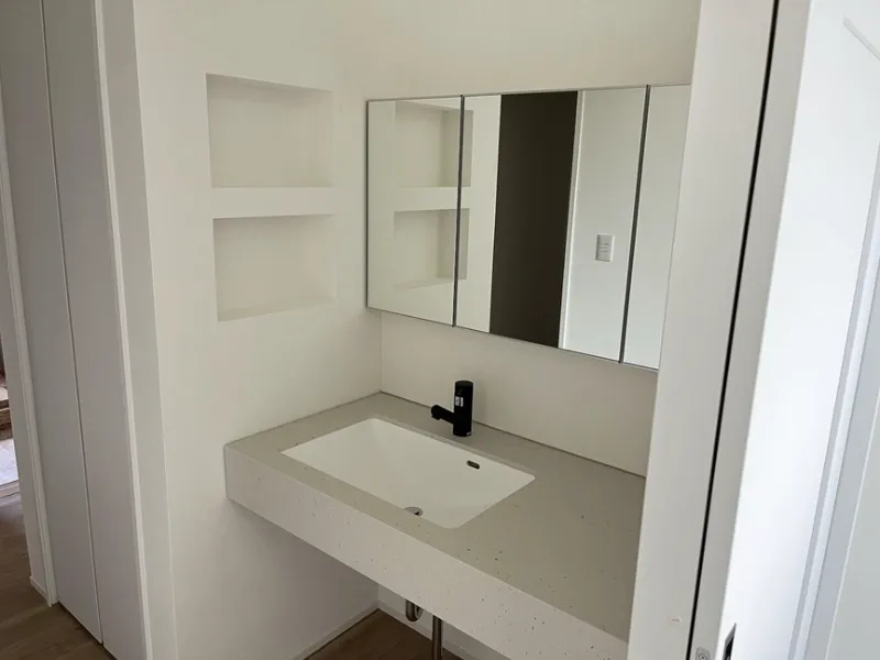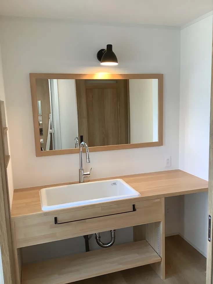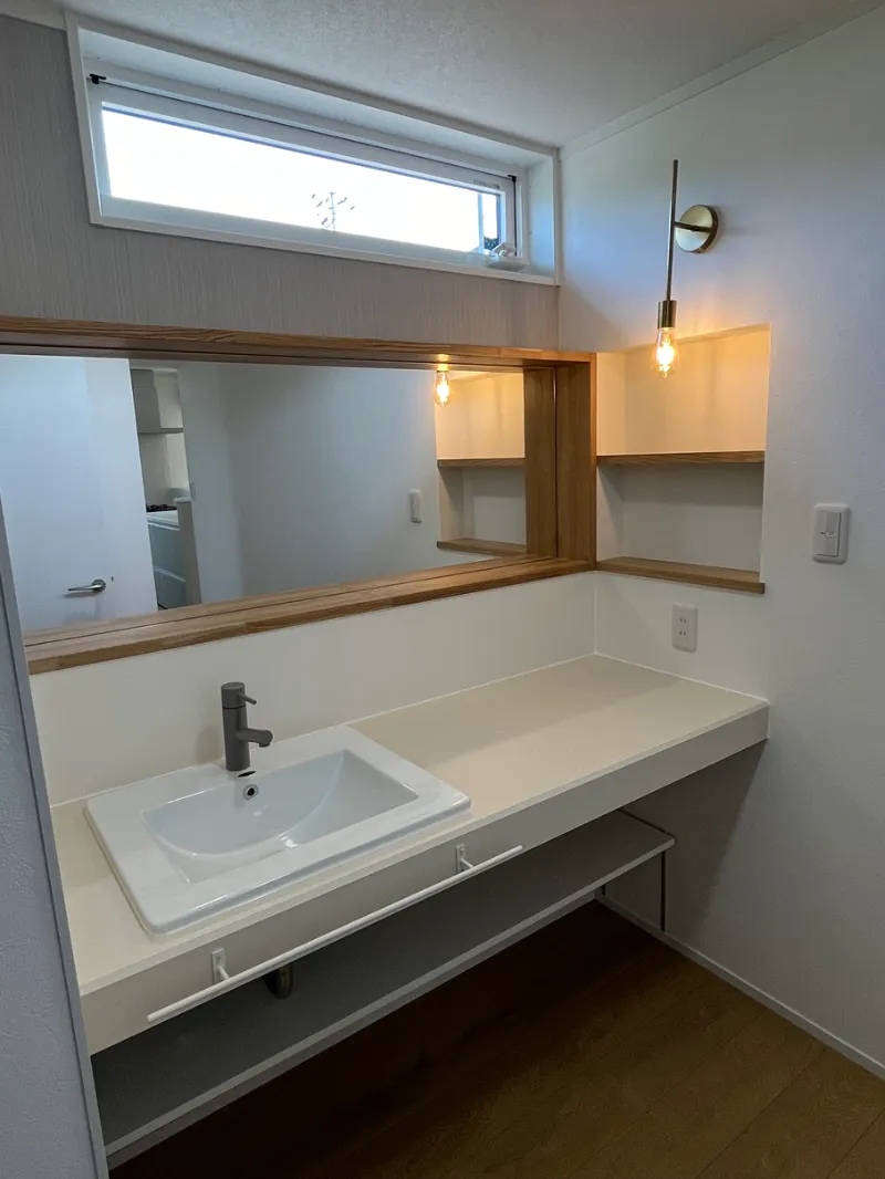 深い鏡が特徴の造作洗面カウンター