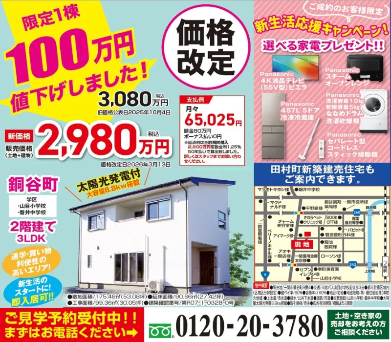 <土地+建物> 3,080万円 → 2,980万円(税込)