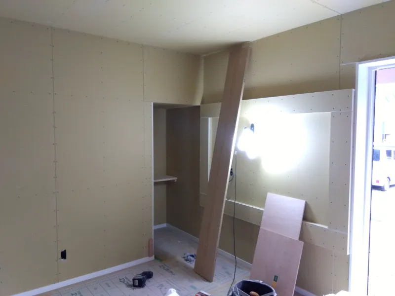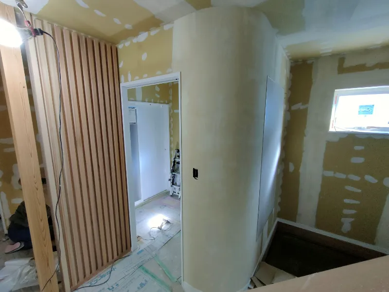 先日から内装はクロス貼りが始まりました。