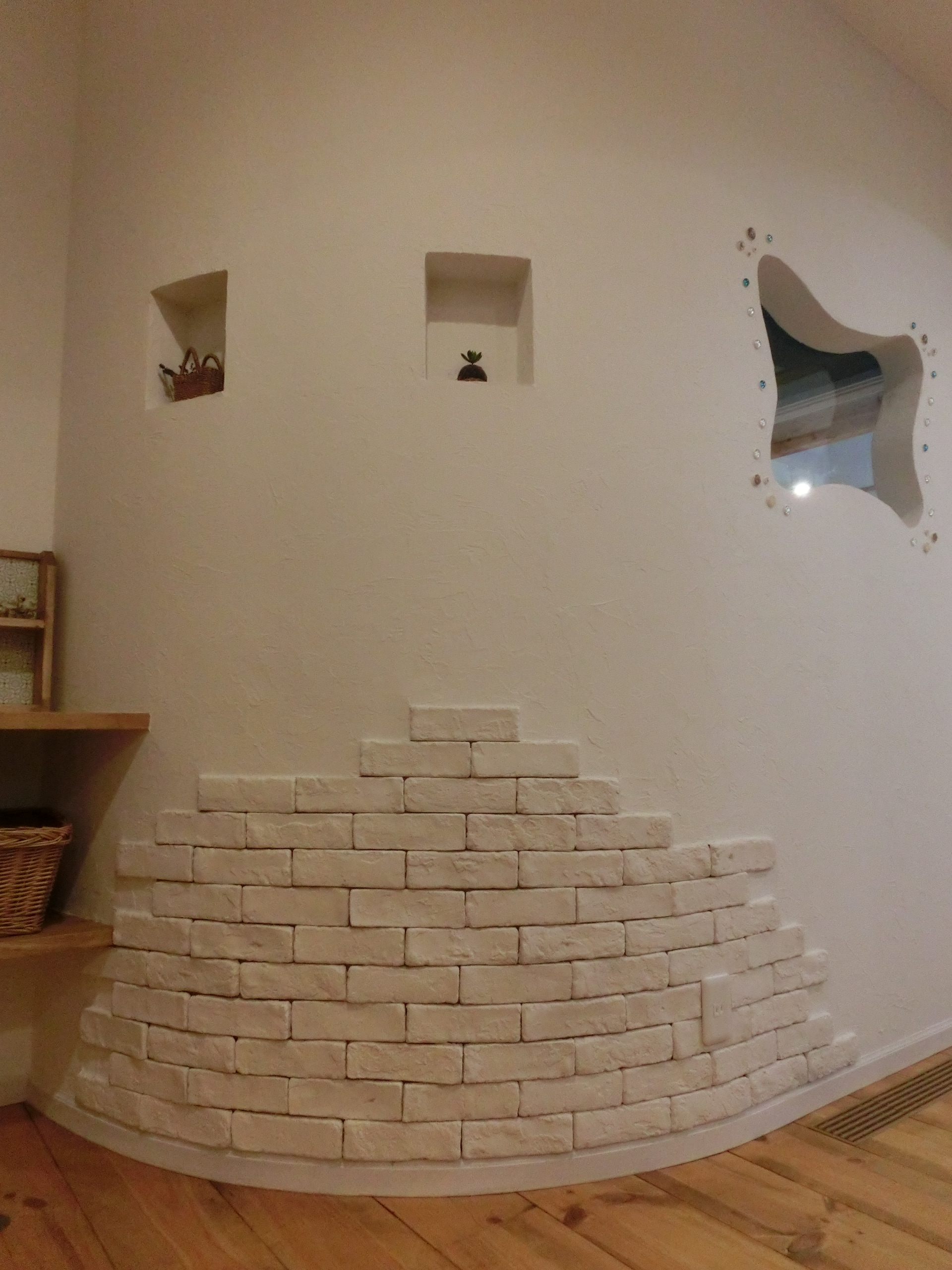 アール壁にホワイトブリックに可愛いくりぬき窓^^