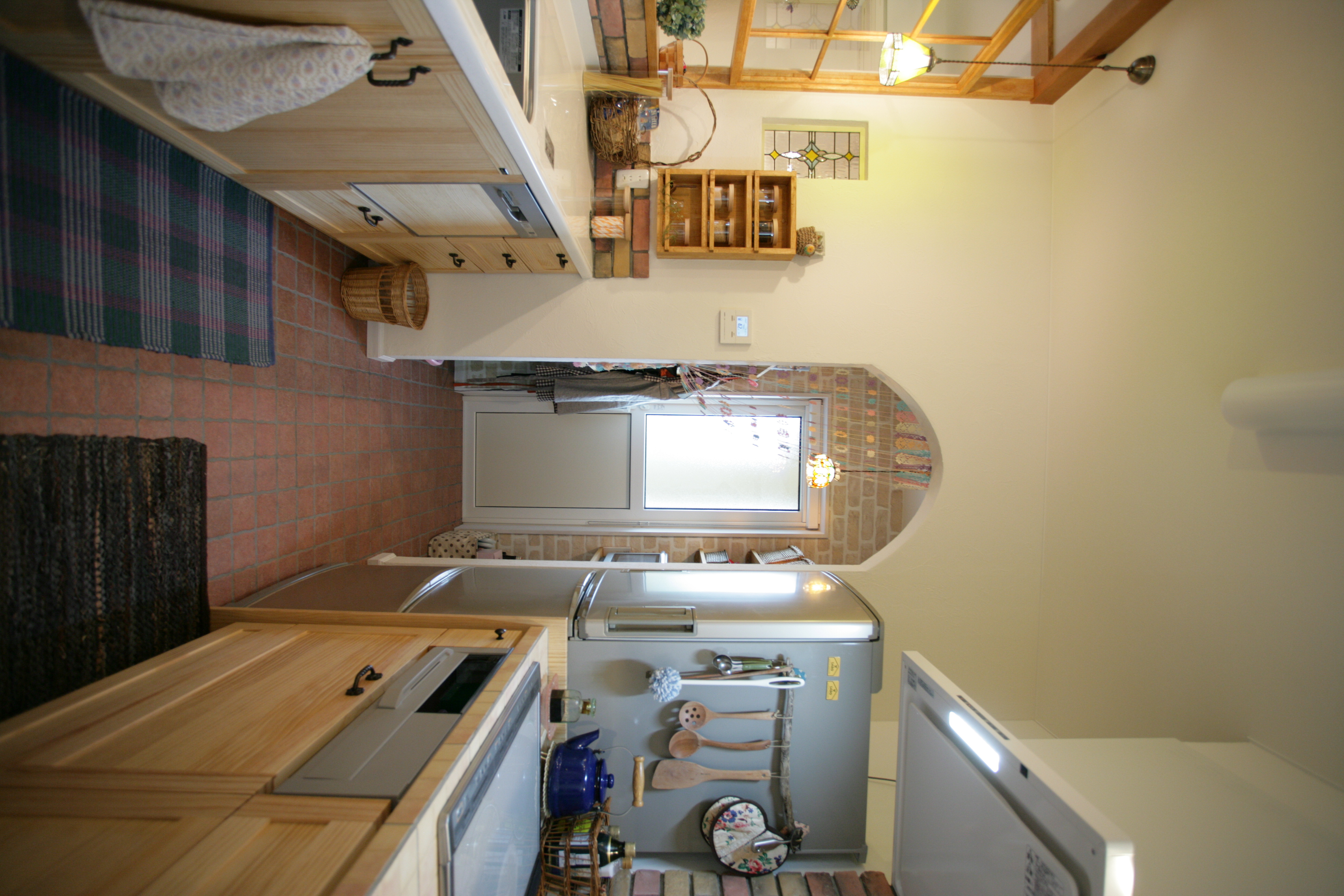 Ⅱ型キッチンは雑貨も台所用品も分けて配置でき、綺麗に納まってます^^