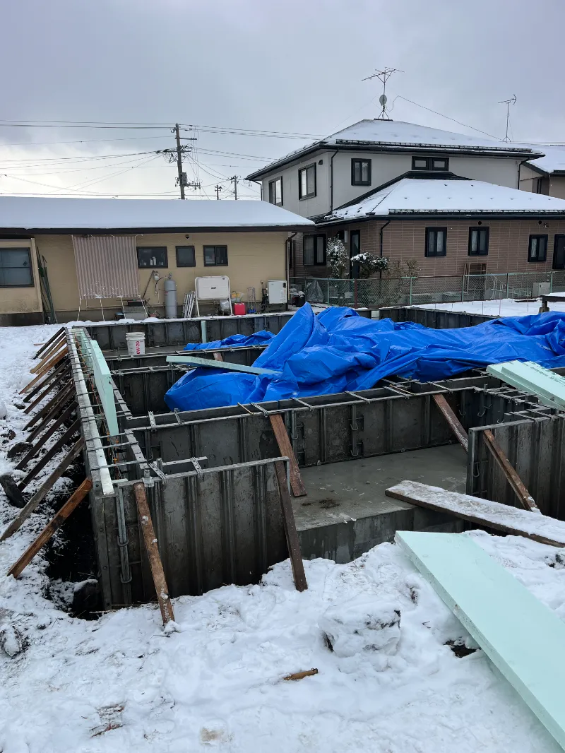 基礎打ち込み断熱材も設置し