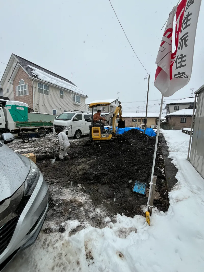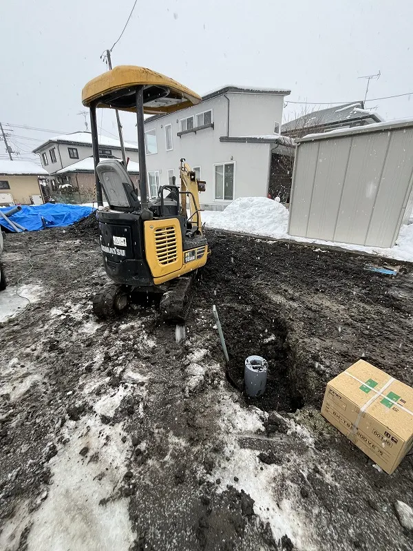 住宅外部から公設桝までの配管を足場帰る前につなぐ工事します^^