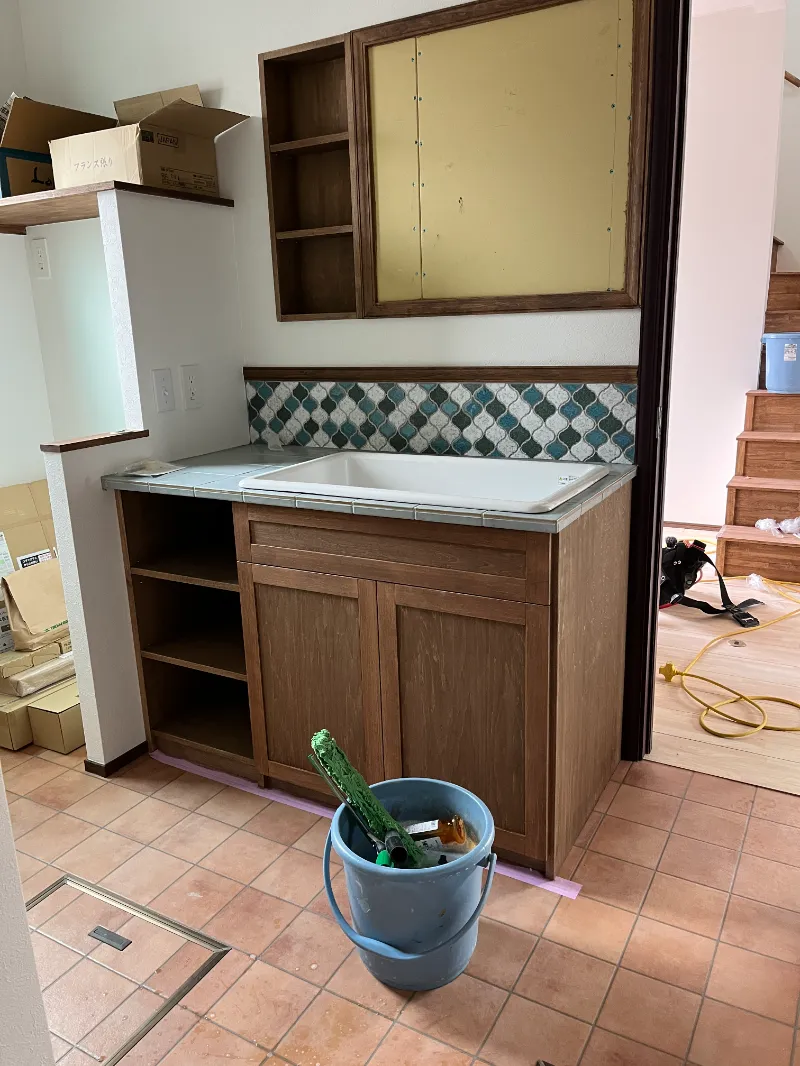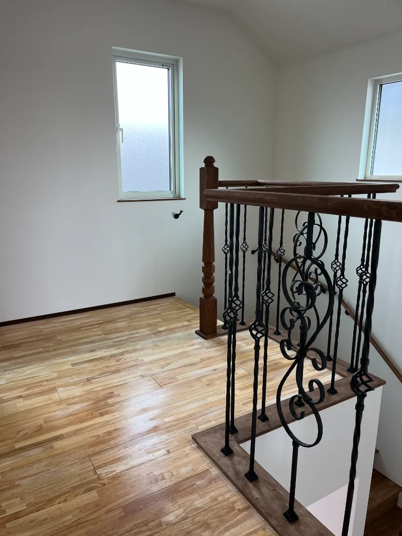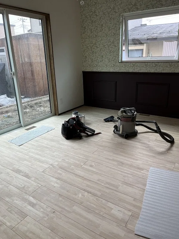 床の養生が剥がされ、無垢フロアが見えてきました^^