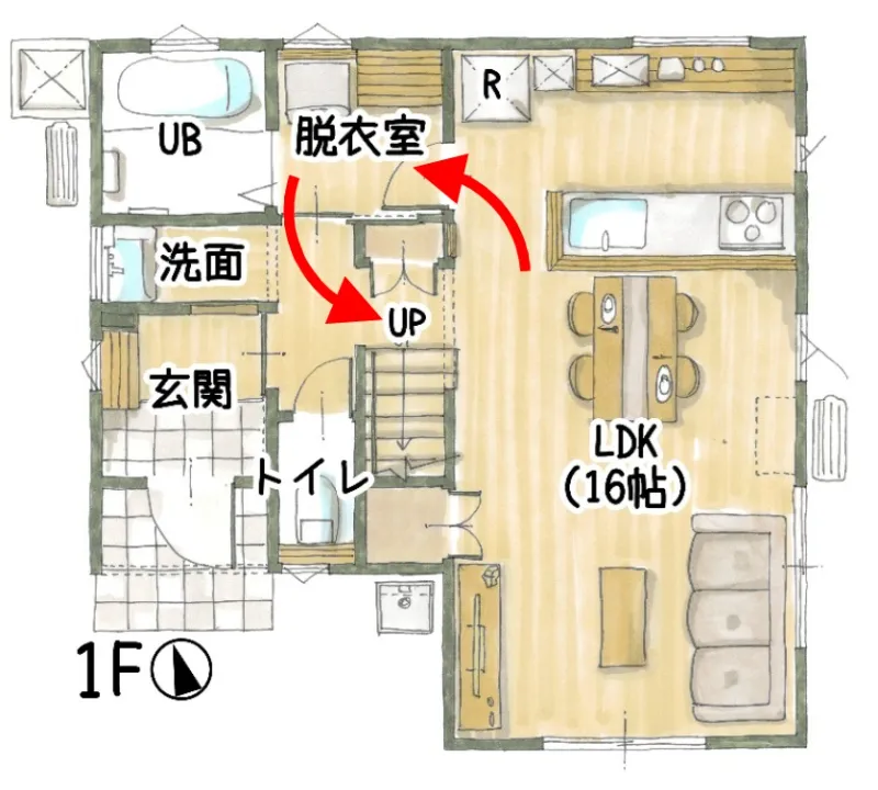 これは、家の中をぐるっと回れるようにつながった間取りのことです。