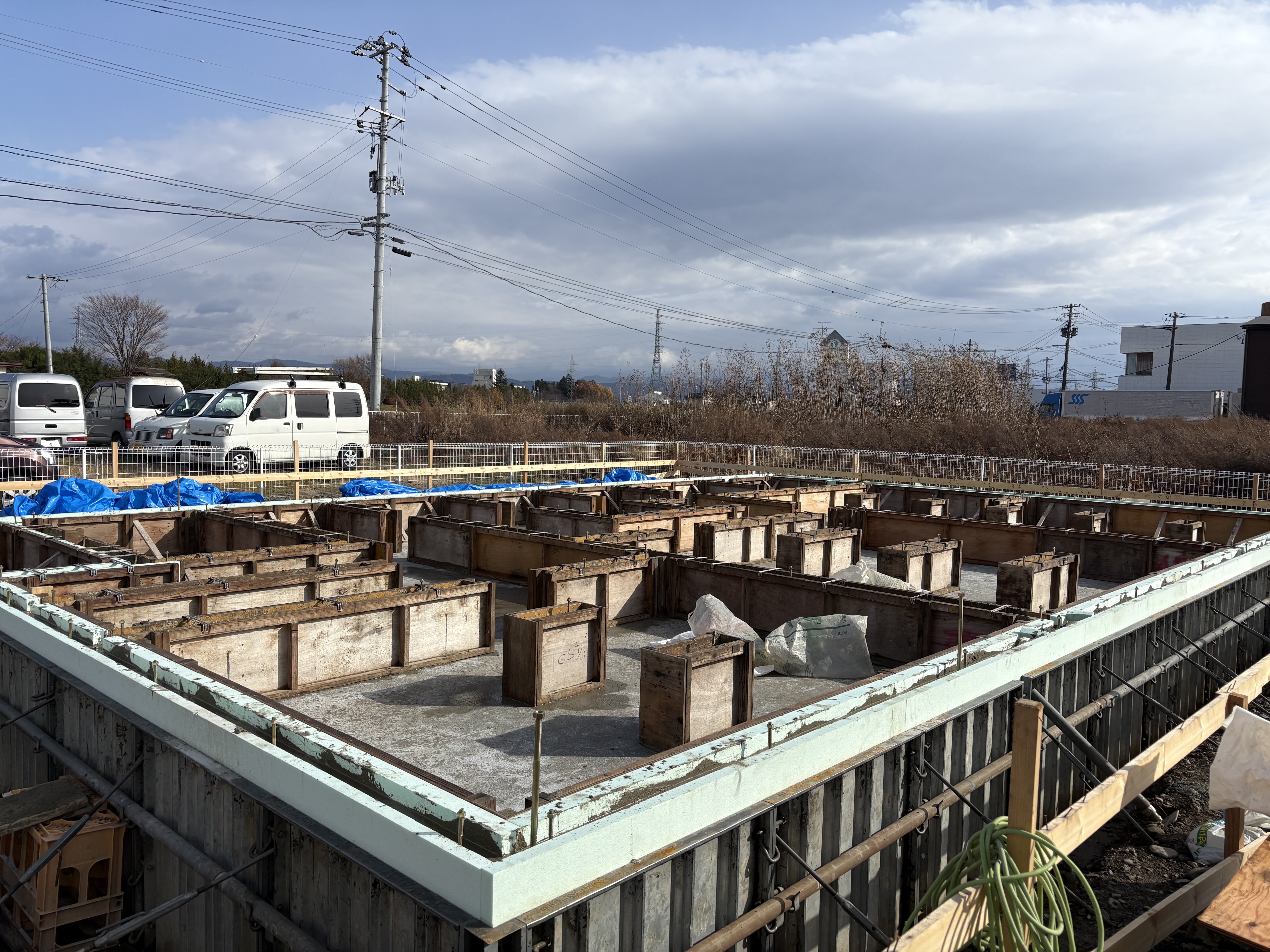 来週、火曜日には型枠バラし、水曜日には水道工事となります。12/2前後には基礎工事完了予定です。