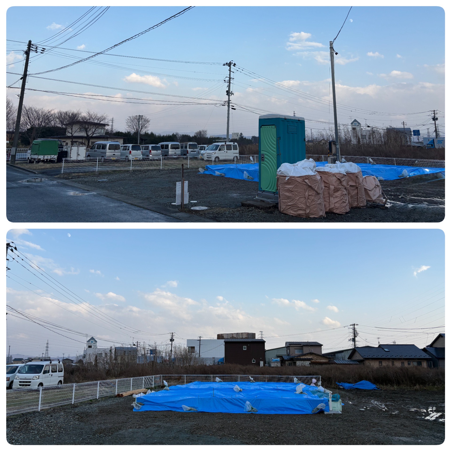 次の現場の件で、大工さんと打ち合わせを兼ねて現場回ってきました。土間打設終わって養生中です。
