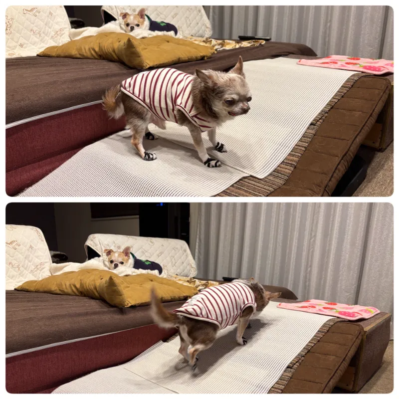 来月15歳’76歳)を迎えるこたろうくんのスロープ。昨年はクマ騒動が頻発し、あまり散歩ができす、足腰が急激に衰えました。腎臓が悪く、毎週2回のお注射と点滴をしています。まだまだ頑張れー。あったかくなったらお散歩しようねー。
