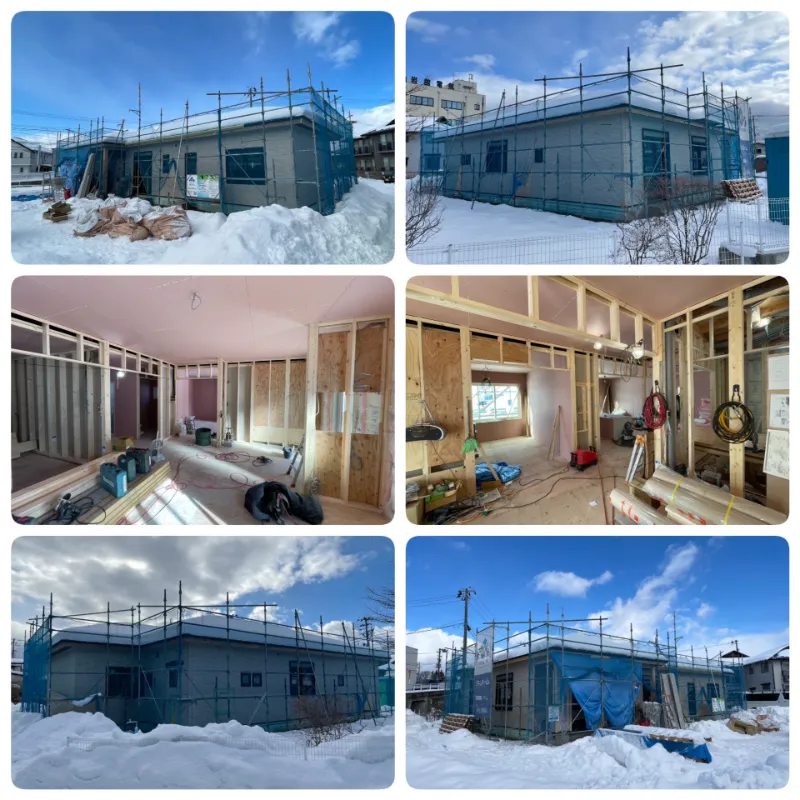 外壁が張られましたね。内部も同時進行しています。しかし、今年はどこの現場も雪がすごいので、仕事始め前に雪かきからになるので大変ですね。職人の皆様には感謝です。ありがとうございます!!