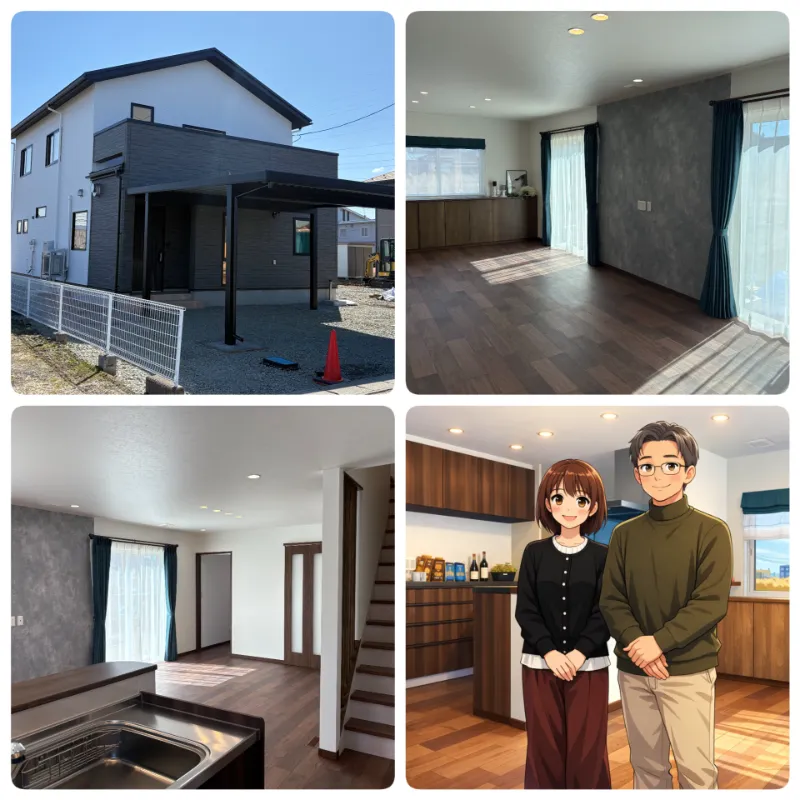 今日は、IBC岩手放送684ワイドステーションで中継がありました。切妻屋根とパラペットの組みあわせ。パラペットは意匠的に屋根を見えなくして、モダンな外観にしてくれます。内部建具や床はウォールナットで落ち着いた雰囲気になっています。全館冷暖房やファミリークローゼットなど見どころ満載の見学会場となっております。