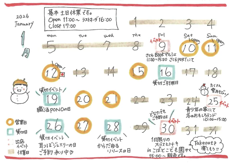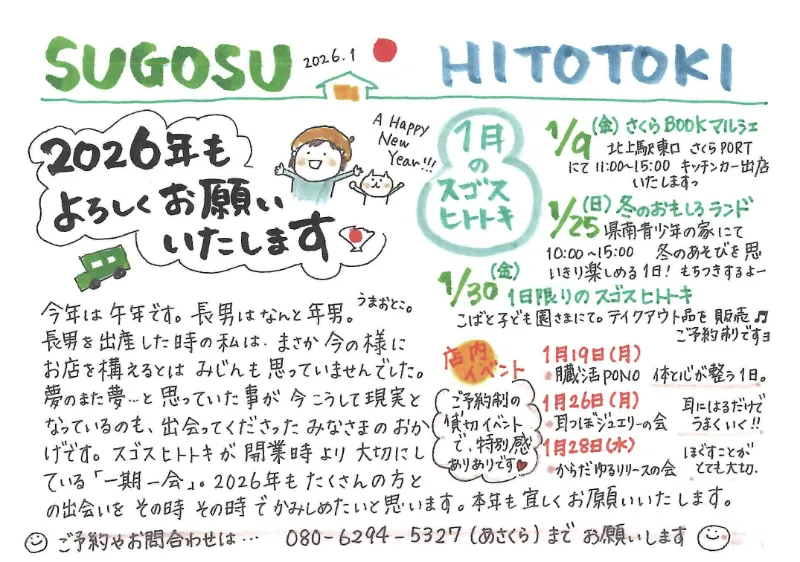 カフェSUGOSU-HITOTOKI 1月のお知らせ