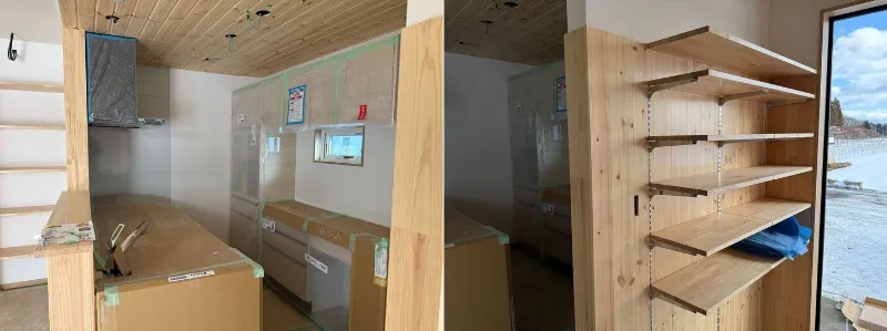 キッチンセットはまだ養生の下に隠れておりますが、いよいよお家感がでてきました。