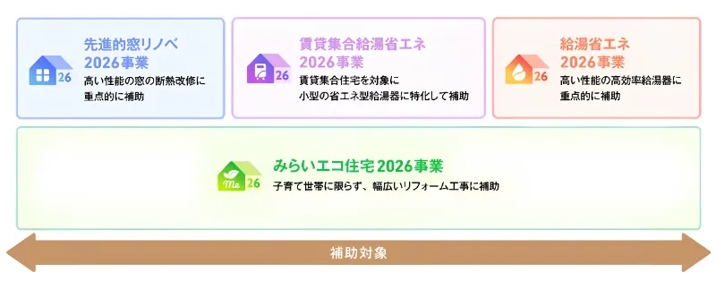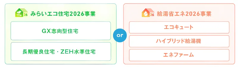 ※新築住宅において、みらいエコ住宅2026事業と給湯省エネ2026事業は併用できません。