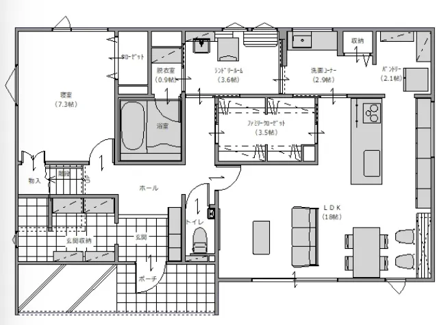 岩手県盛岡市本宮北飯岡一丁目1-82号 パルコタウンママ楽の家 simple style 平屋モデルハウス