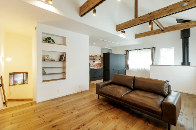 2階リビングは連なる梁が圧巻の