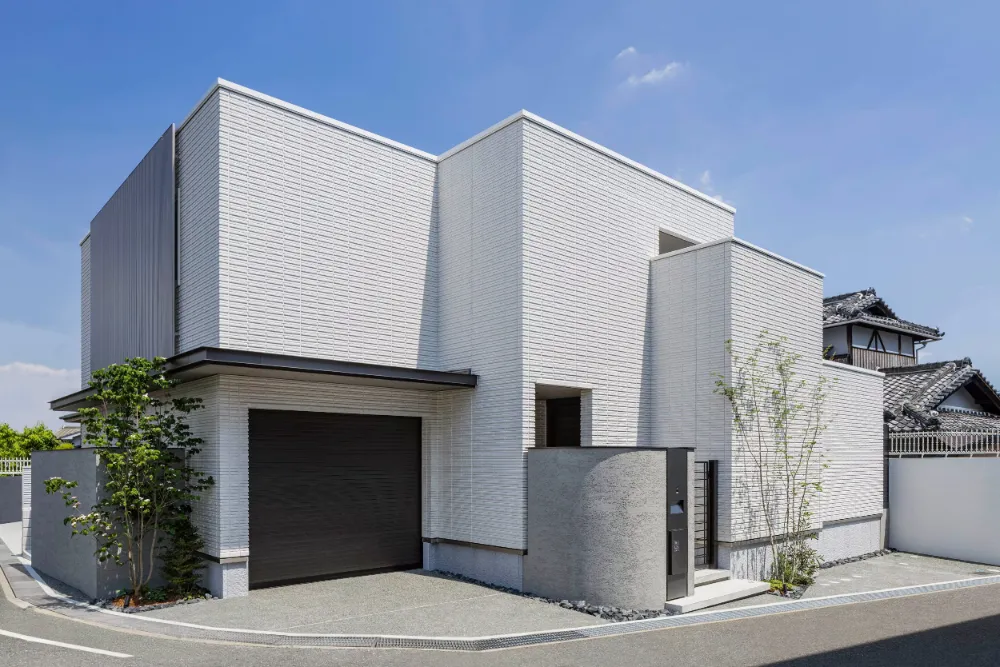 室内の開放感とは対照的なプライバシーに配慮した外観。街並みに調和するよう、ホワイトの外壁で軽やかに仕上げている