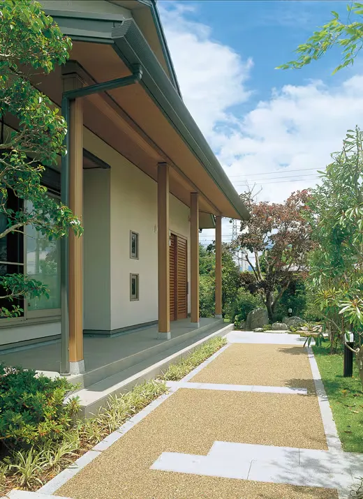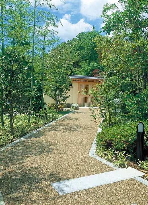 洗い出しにしろ御影石をアクセントにしたアプローチ