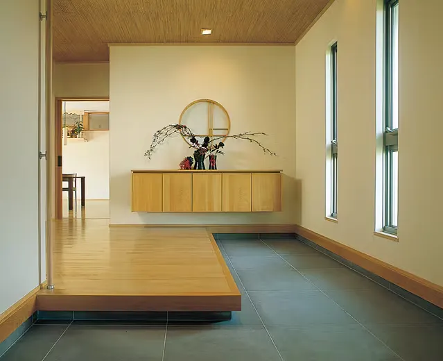 左奥にシューズクロークを設け、玄関ホールは広々すっきりとした空間に