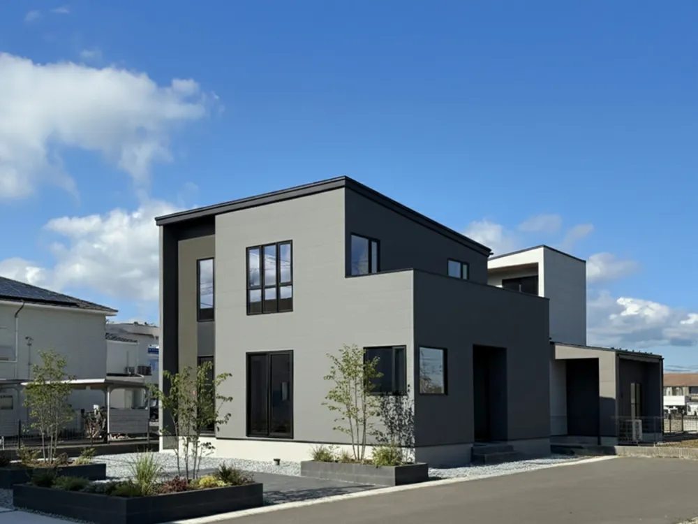 ホワイトのパネルにブラックの天板が映える、まるでカフェのようなキッチン。立つだけで気分が上がる、やさしい可愛さと落ち着いた雰囲気が魅力です。