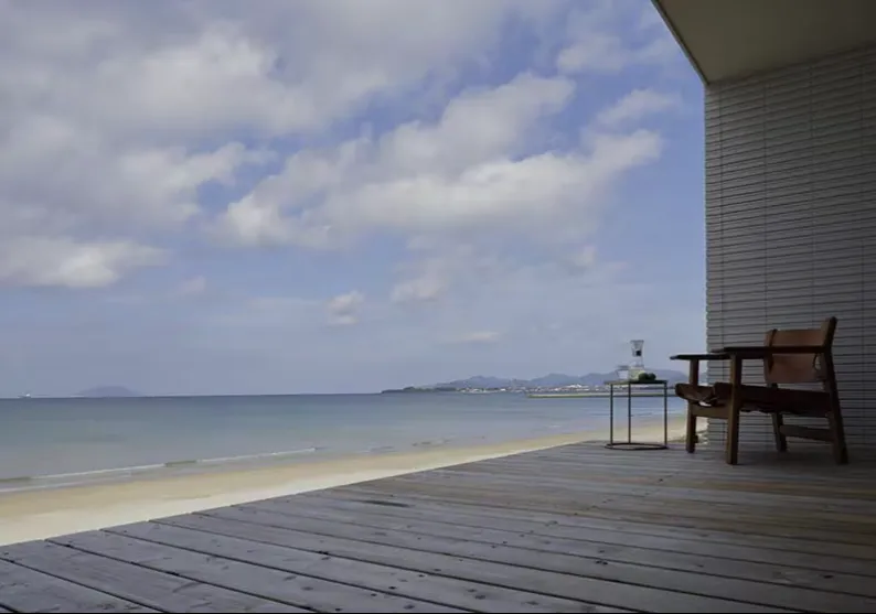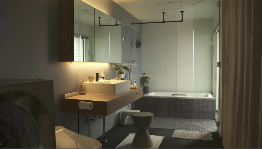 海側に浴室と洗面室を配置。 サーフィンの後、海から直行できる動線を確保し、海とともにある暮らしを、より快適なものにしている。