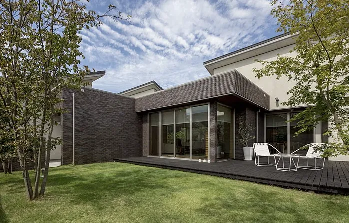 建物を雁行させ、それによって生まれた敷地のスペースに、東と西、そして北側にも大小の庭をプラン。