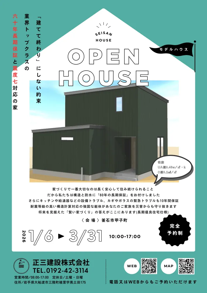業界トップクラス60年長期保証の家|高気密・高断熱モデルハウス見学会<完全予約制>
