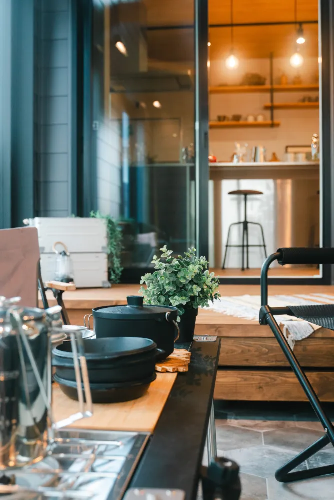 アウトドアギアを飾れる土間収納。日常使いにもお手入れにもちょうどいい