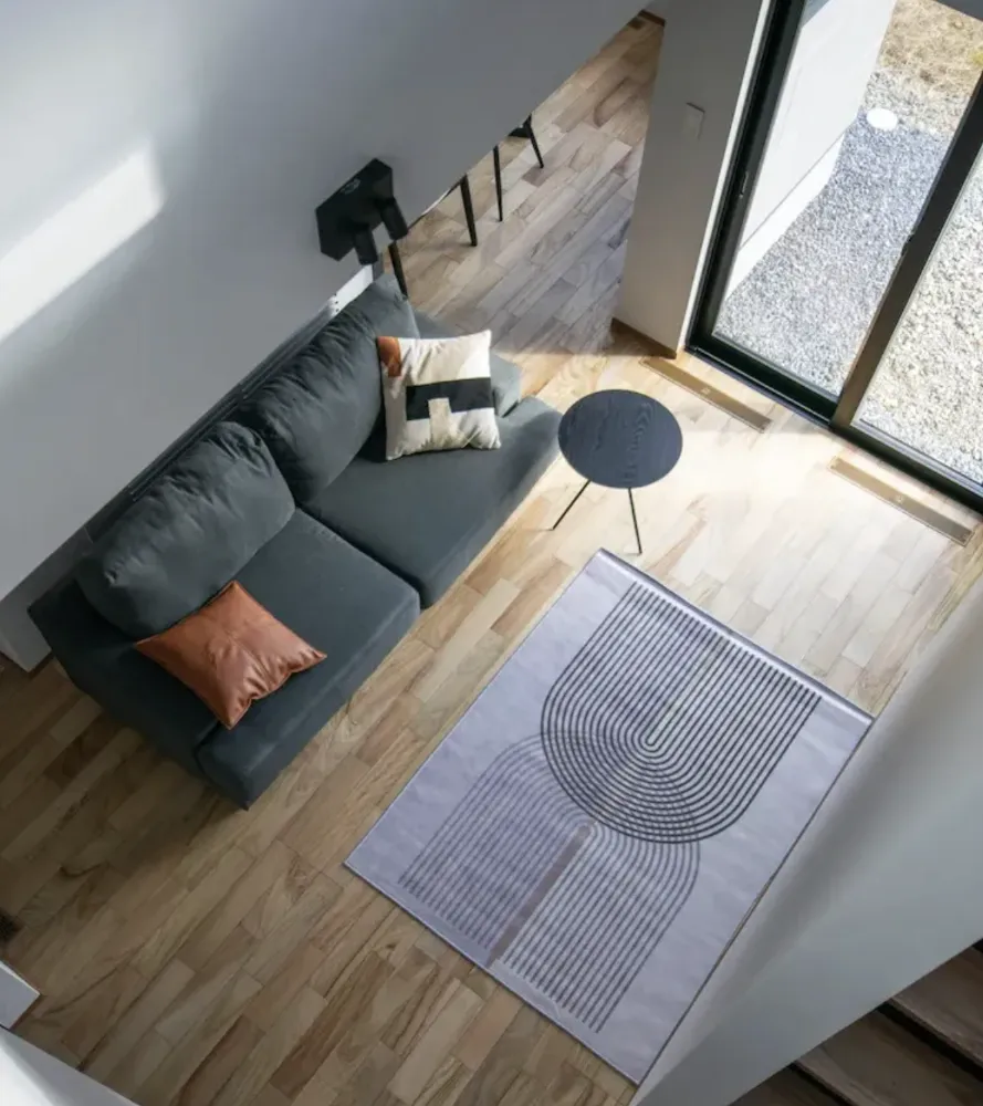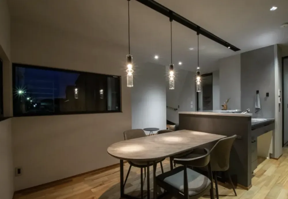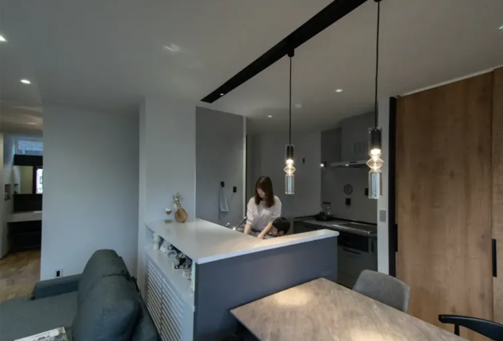 シンプルなトーンを基調に、木目や質感のある素材をアクセントとしてプラス。落ち着きと上質さを兼ね備えた、スタイリッシュなインテリア。