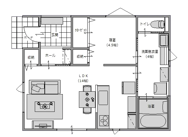 15坪でもゆとりを感じる1LDKの間取り 一人暮らしにちょうどいいコンパクト平屋(山田町)