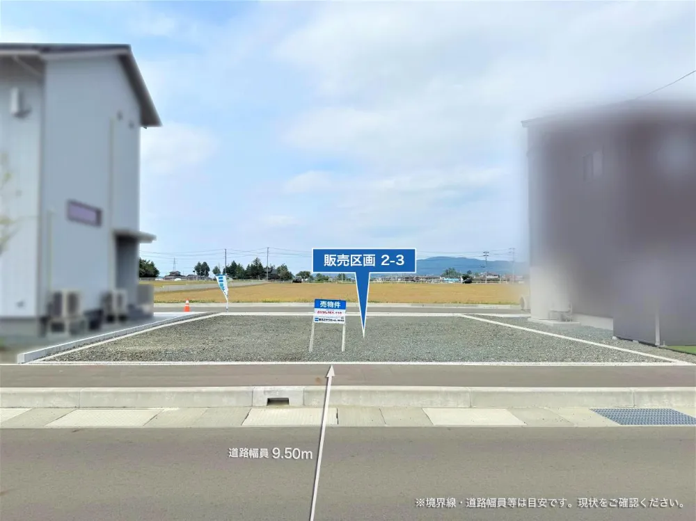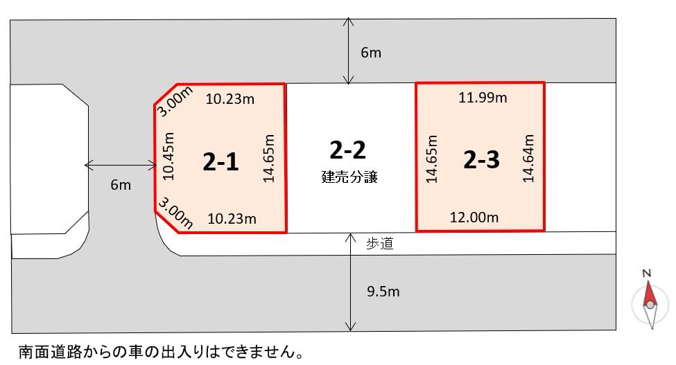 道路幅:6m、アスファルト舗装、接道1:一方 公道 南 幅員9.5m/接道2:一方 公道 北 幅員6m/接道3:一方 公道 西 幅員6m/私道負担:無