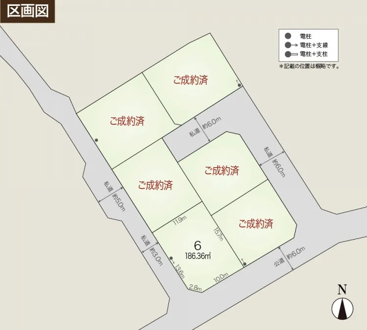 ○私道負担:有:区画№1(280㎡のうち持分10分の1)区画№6(213㎡のうち持分10分の2、4.33㎡のうち持分3分の1)