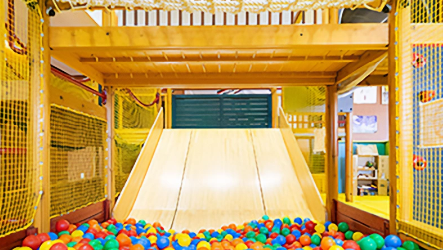 みんな大好きなボールプール。大きな滑り台からボールの海へ。